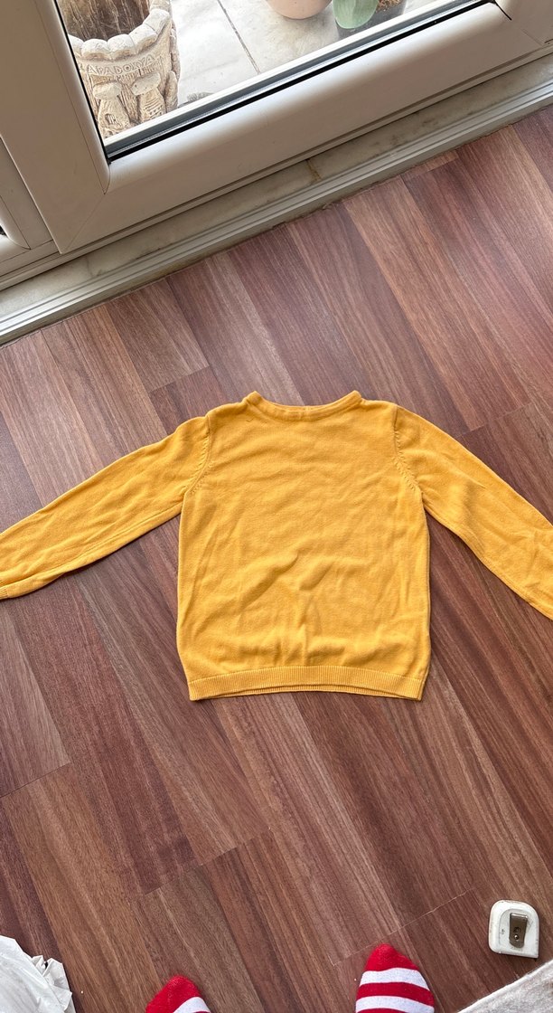 Sarı renkli kız çocuk sweatshirt, uzun kollu ve yuvarlak yaka. Düğmeli ve bol kesim, yumuşak ve sıcak kumaştan üretilmiştir.
