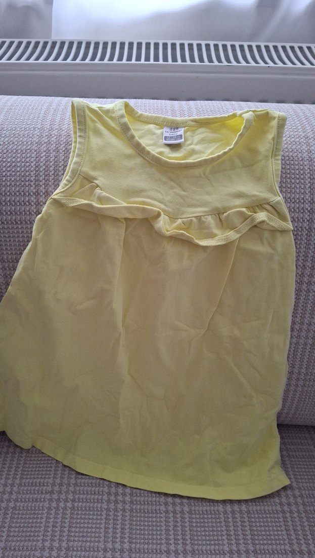 Kız çocukları için sarı renkte elbiswGöğüs kısmında fırfır detayı ve rahat kesimi bulunur