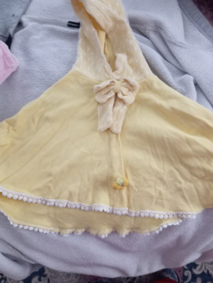 Pastel sarı renkli, yumuşak kumaştan kız çocuk pançosu. Fırfır detaylı, kolsuz ve bol kesim, bohem tarzda.