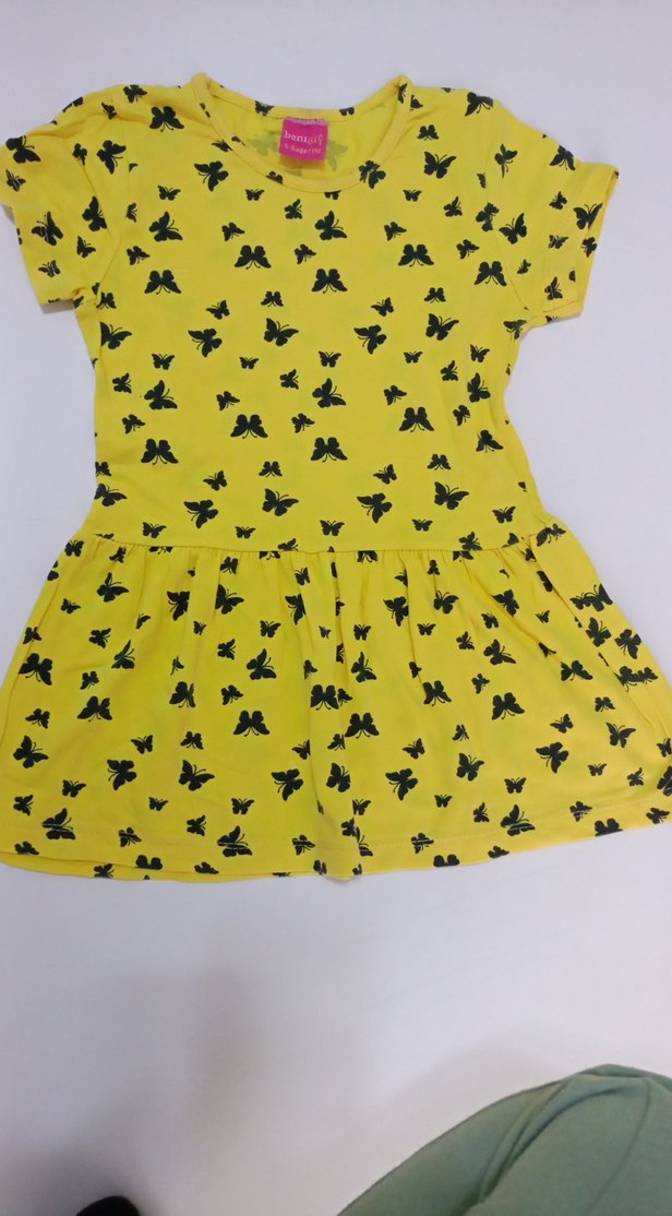 Kız Çocuk Sarı Kelebek Baskılı Elbise