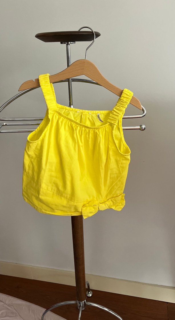 Kız Çocuk Sarı Keten Fırfırlı Bluz