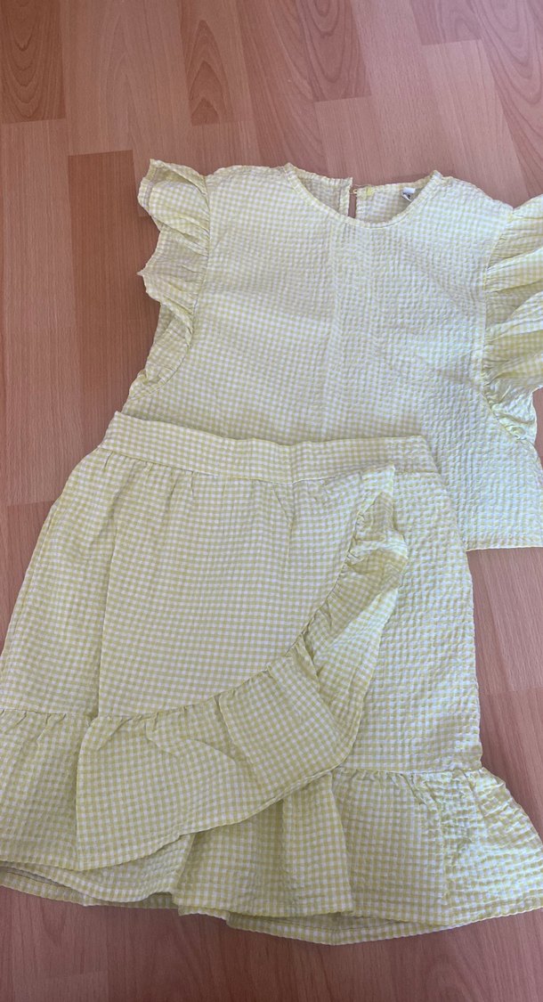 Kız Çocuk Sarı Keten Fırfırlı Bluz etek takım Hiçbir sorunu yok