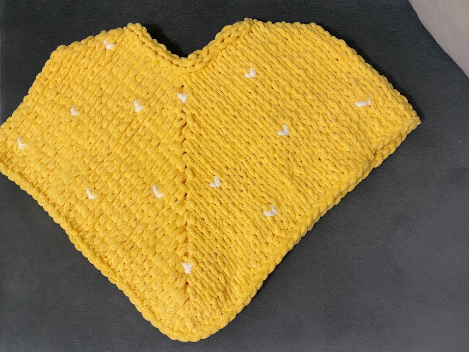 Kız çocuklar için sarı renginde, nakışlı, örgü panço.Renk isteğe bağlı örülür.✨