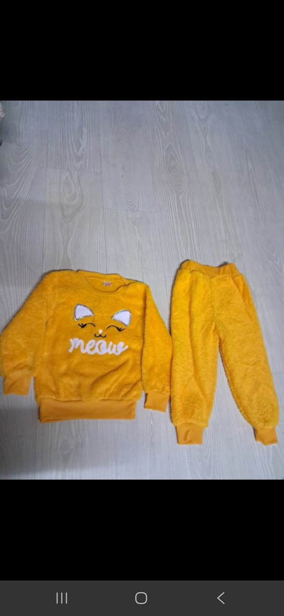 sarı peluş sweatshirt ve eşofman takımı.Kürklü kedi baskısı bulunur. Ürün sıfır yenidir. Kalıp normal.Kişi ne yaş giyiyorsa onu almanızı tavsiye ederim. Fiyatta indirim yapılmıştır. ****Ürünü almak isteyenler ilk önce stok durumu için mesaj atmanizi istiyorum kaldı mı kalmadı mı diye, günden güne stok durumu değişebiliyor.
