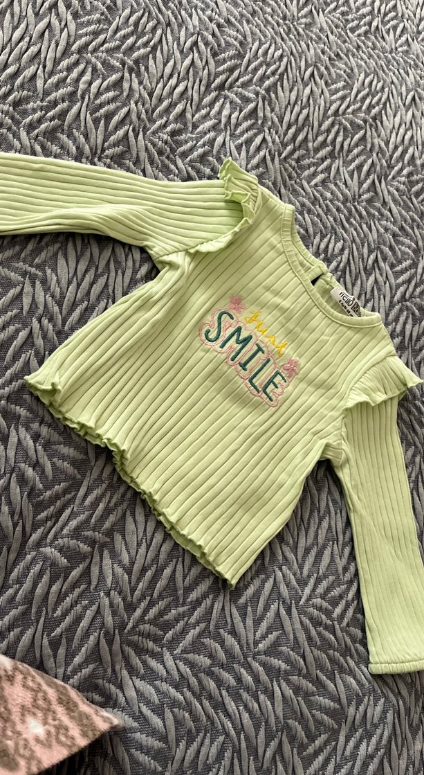 Sarılı pilili uzun kollu, fitted kesim kız tişörtü. Sentetik yumuşak kumaş, nakış detaylı, trendy sokak stili için uygun.