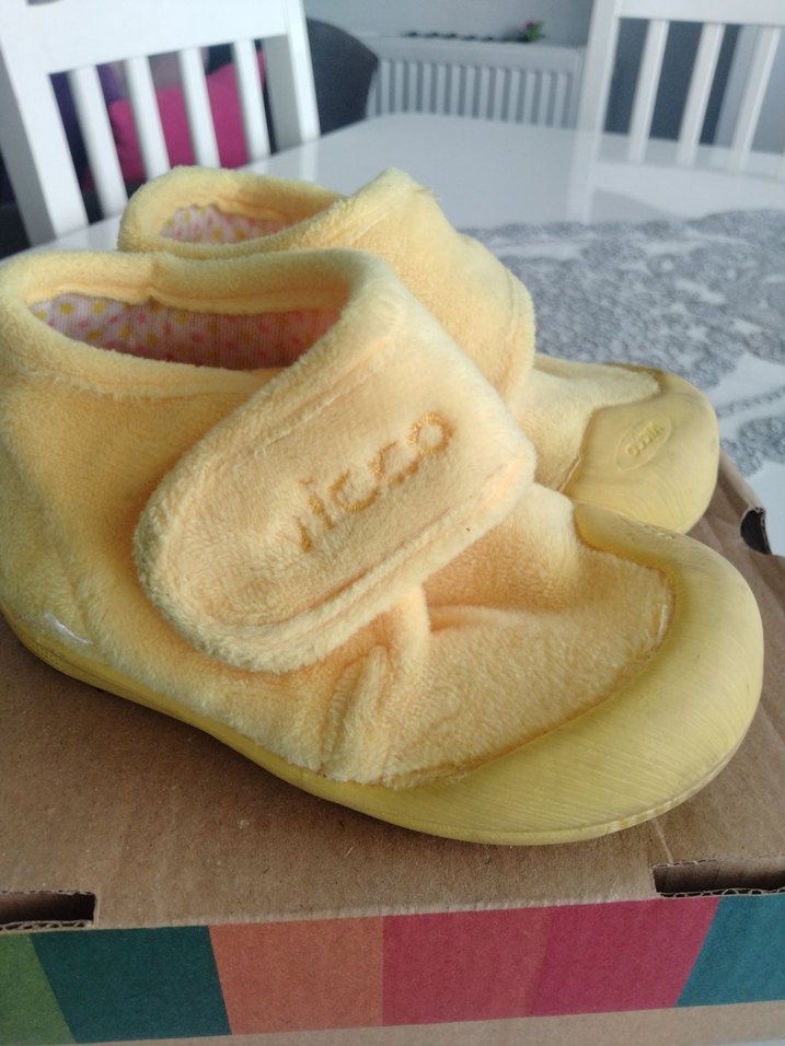 Kız çocuklar için sarı polar ev terliği, kolay giyilmesi için cırt cırtlı kapama ve rahat uyum sağlar. Düz ve desensiz tasarıma sahiptir.