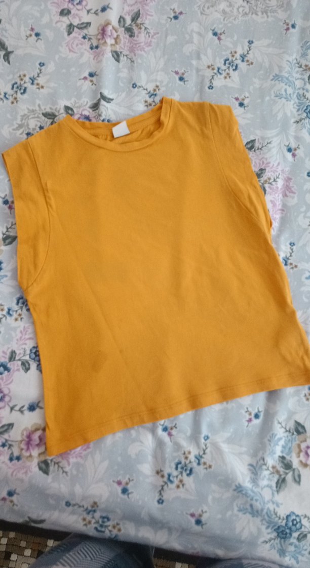 Pastel sarı renkte, yumuşak kumaştan çocuk t-shirt Düz ve rahat tasarım.
