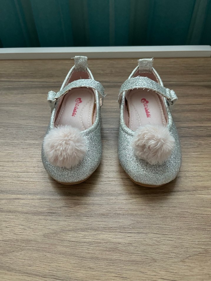 Kız Çocuk simli Gri Kürklü Babet Ayakkabı