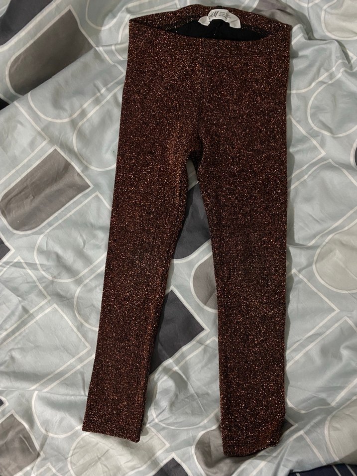 Simli kahverengi, dar kesim kız çocuk taytı, sentetik kumaştan, trend sokak stili için uygun.✨