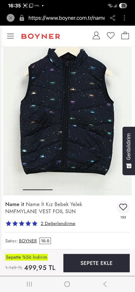 boyner dan almıştım, name it markasına ait bir yelek tertemiz duruyor , sadece fermuarı yok , fermuar yapilmasi gerekiyor bilerek alım yapınız.