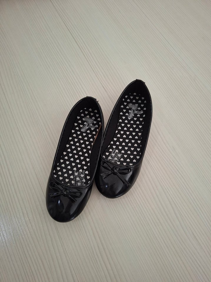 32 numara Rugan Siyah renkte, fiyonk detaylı kız çocuk babeti. Kauçuk malzemeden yapılmış, iç tabanı kalp desenlidir.