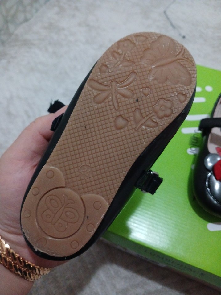 siyah kız çocuk balerin ayakkabı, cırt cırtlı ve desenli kauçuk tabanlıdır.
