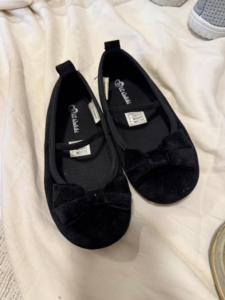 Kız çocukları için siyah babet ayakkabı, bağcıklı bantlı ve sade, düz tasarımlı, hafif goth tarzı. Kauçuk malzemeden yapılmıştır. 27 numara