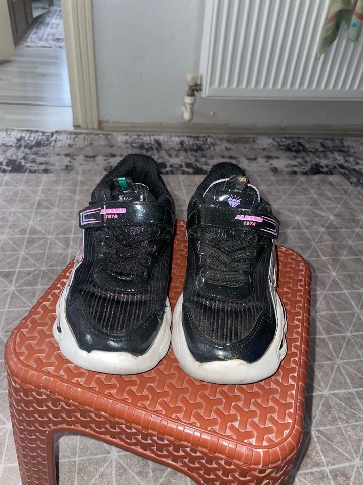 Kız Çocuk Siyah Bağcıklı Cırtlı Spor Ayakkabı