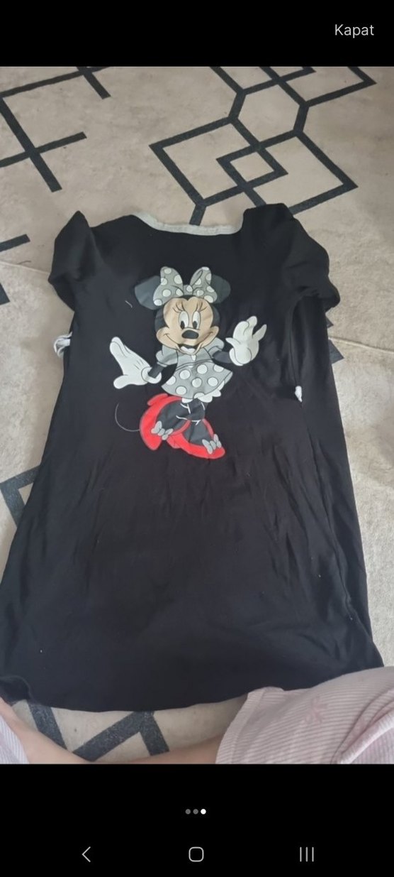 Siyah, baskılı Minnie Mouse figürlü, düğmeli ve kısa kollu kız çocuk bornozu sentetik kumaştan, dar kesim ve yuvarlak yaka.