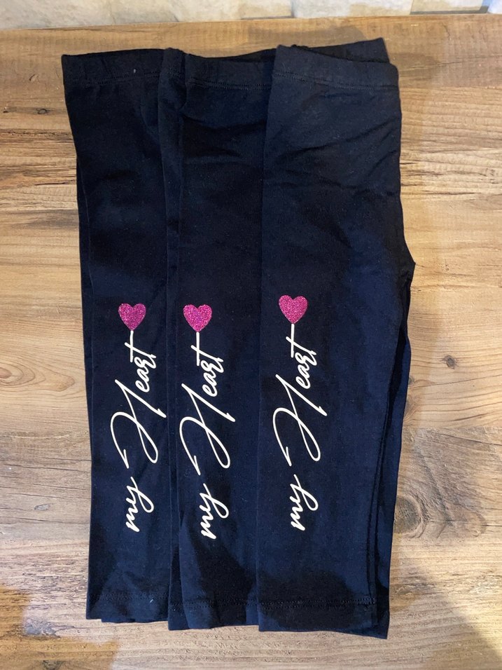 Kız çocukları için siyah, baskılı denim tayt. Üzerinde pembe kalp ve "my Heart" yazısı bulunur, trend sokak stiline uygundur.