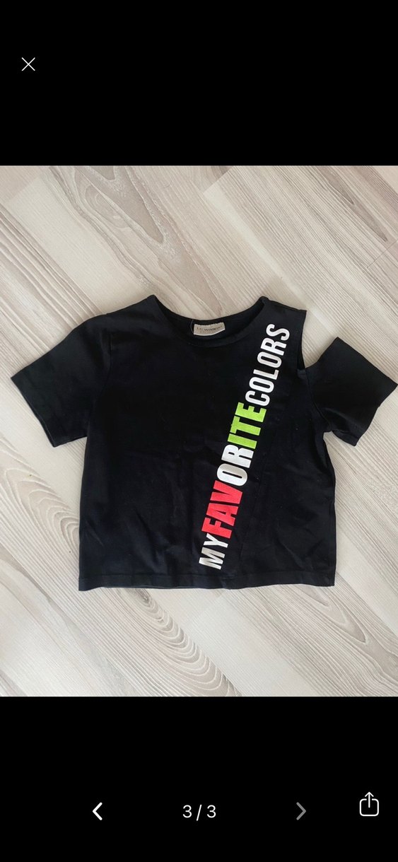 Pamuk kumaştan, kısa kollu ve baskılı yazılı, modern kesimli siyah kız çocuk tişörtü.