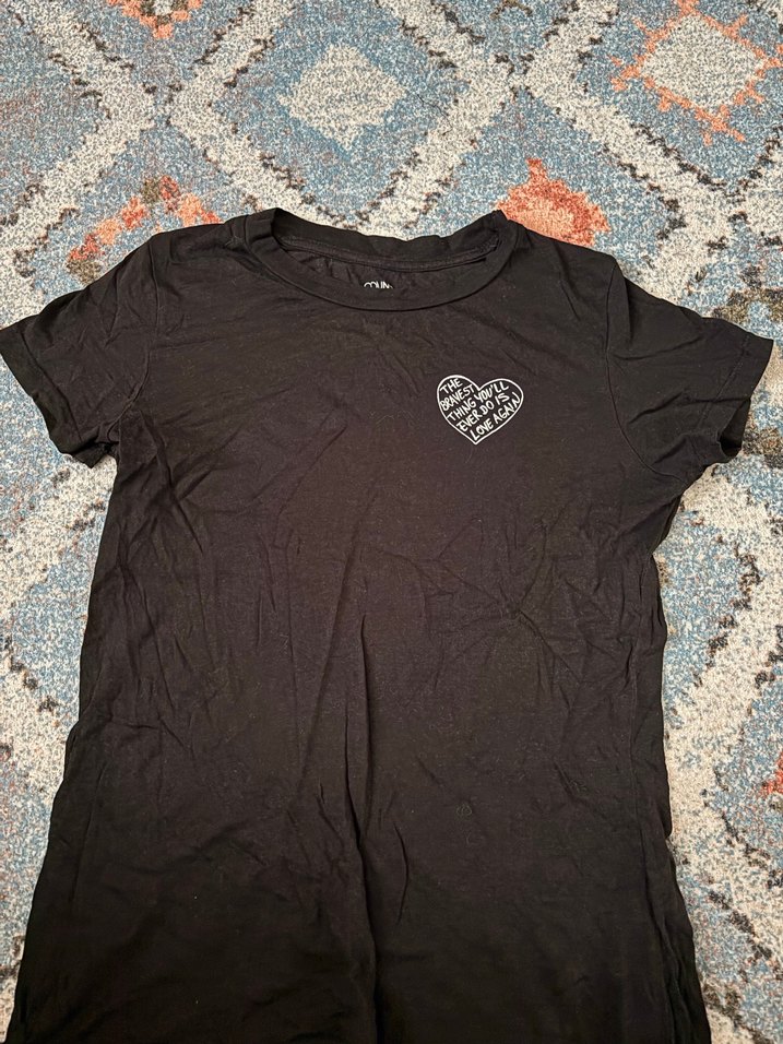 Kız çocukları için pamuklu, siyah, kısa kollu ve bisiklet yaka dar kesim tişört. Küçük kalp baskısı ile rock punk tarzını yansıtıyor. Sokak modasına uygun, zahmetsiz şıklık sunar.