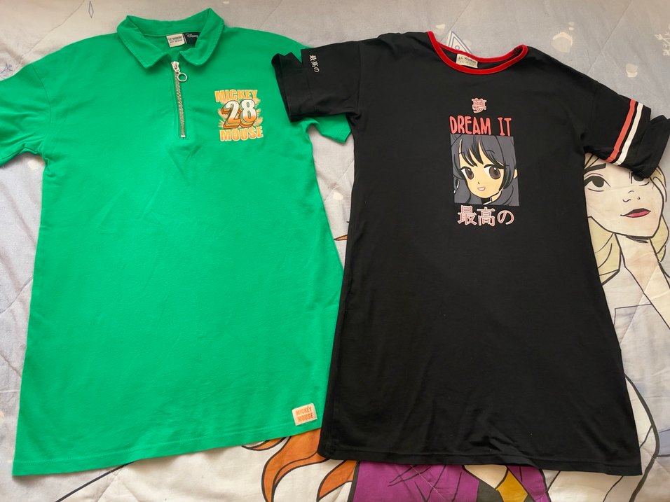 Kısa kollu, bisiklet yaka, pamuklu siyah elbise. Baskılı 'DREAMIT' yazısı ve yırtmaç detayıyla rock punk tarzını yansıtıyor. İkili tşört elbiseler
