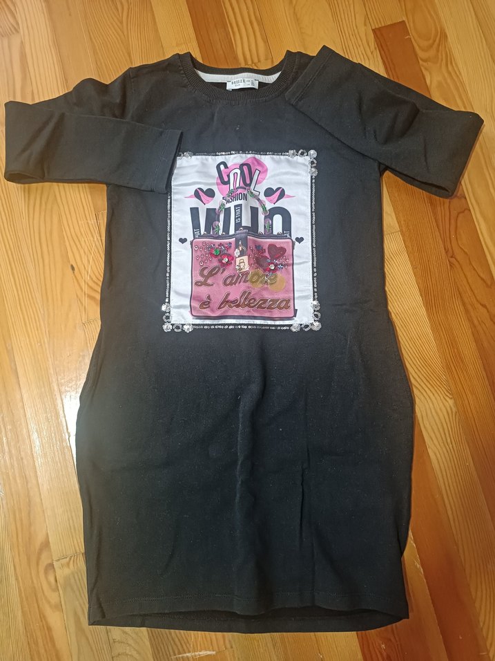 Kız çocukları için kısa kollu, bisiklet yaka ve bol kesim tişört. Ön kısmında baskılı desen bulunur, siyah sentetik kumaştan üretilmiştir. Trendy sokak stili için uygundur.