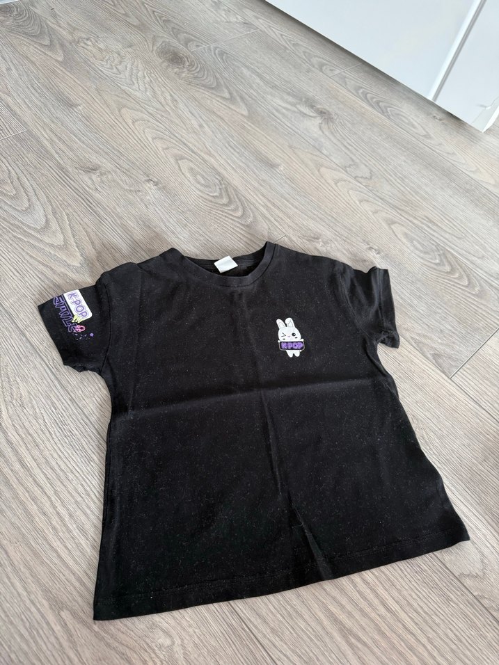 Kız çocukları için siyah, yumuşak ve sıcak kumaştan, salaş kesim kısa kollu tişört. Bisiklet yaka ve baskılı küçük desen ile cırt cırt detaylı kol.