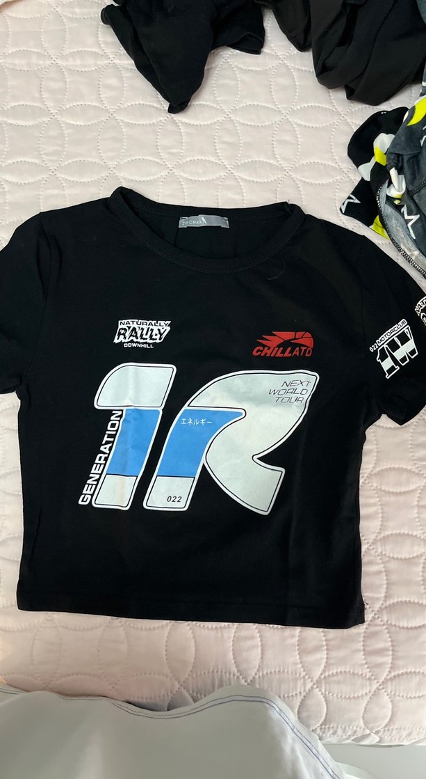 Siyah, baskılı, kısa kollu, bisiklet yaka, kız çocuk tişörtü. Trend sokak stili için CHILLATO ve RAULY baskılıdır. Tekstil kumaştan üretilmiştir.