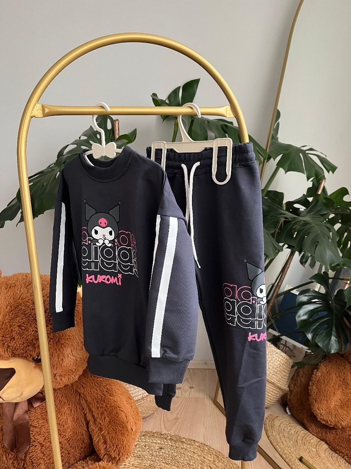 Kız Çocuk Siyah Baskılı Örme Eşofman Takımı