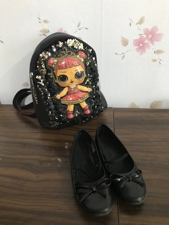 Kız Çocuk Siyah Baskılı Sırt Çantası