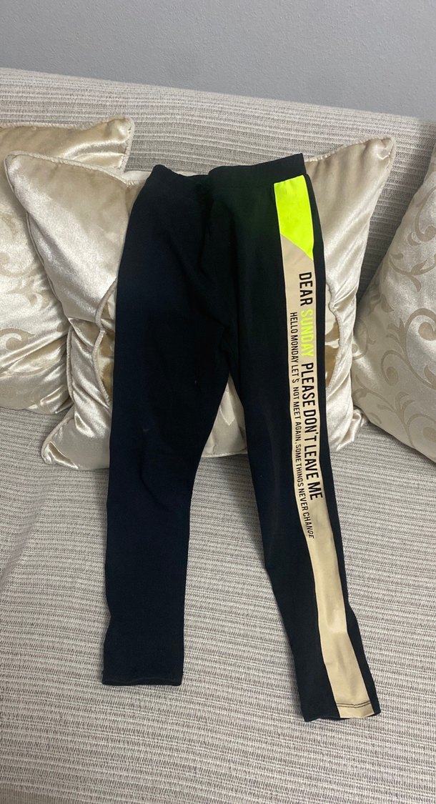 Sentetik kumaştan, elastik belli, baskılı detaylı siyah kız çocuk taytı. Yanında "DEARSU" yazısı bulunur.