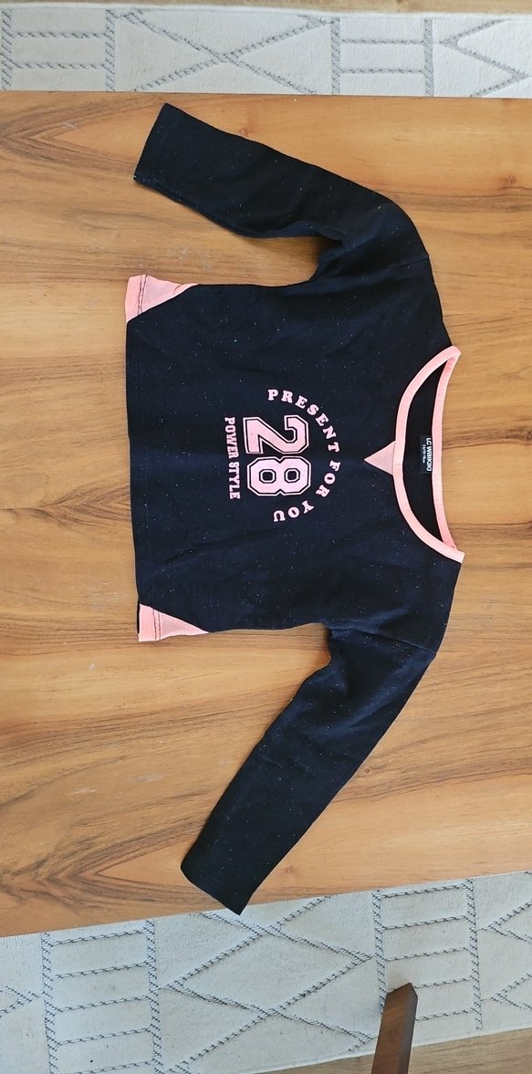 Kız çocukları için siyah, baskılı, uzun kollu ve bisiklet yaka, pamuklu sweatshirt. Pembe detaylı, rahat ve sıcak tutar.