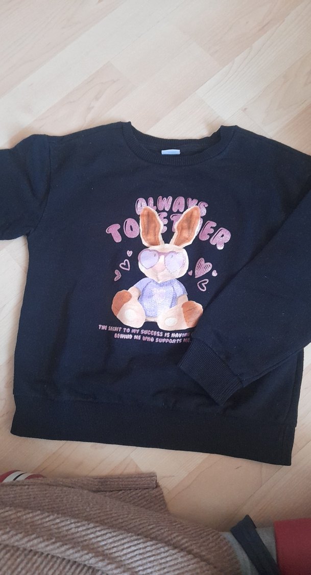 Bu siyah kız çocuk sweatshirtü, bisiklet yaka ve uzun kolludur. Baskılı ve örme detaylı, yumuşak ve sıcak kumaştan yapılmıştır. Rahat kesim, beden S.