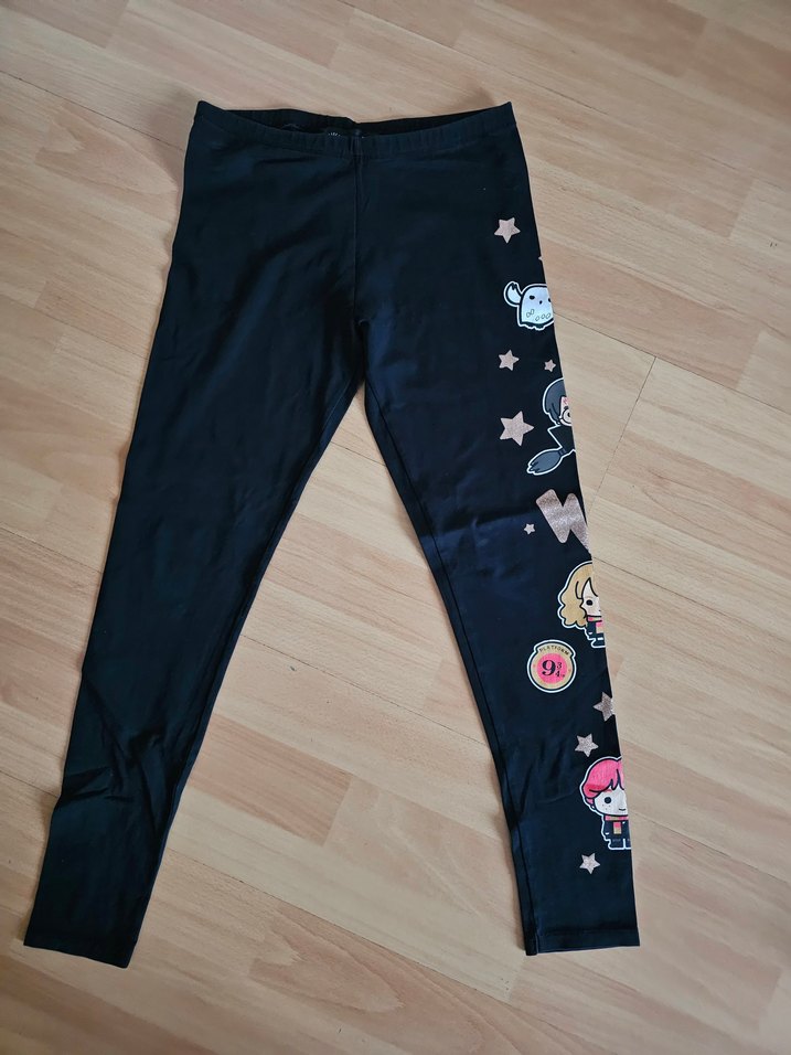 Yumuşak ve sıcak kumaştan, elastik bel bantlı, tek tarafında baskılı siyah kız çocuk taytı.