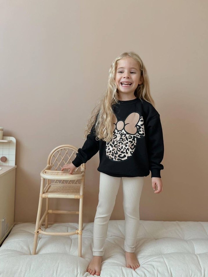 LEOPAR TAYTLI TAKIM 2 iplik,fitilli tayt Bedenler 3 4 yaş 4 5 yaş 7 8 yaş 9 10 yaş Kız çocukları için siyah renkli, uzun kollu, bol kesim ve yuvarlak yaka triko sweatshirt. Önü baskılı ve yumuşak triko kumaştan üretilmiştir.