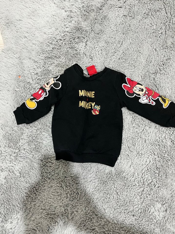 Siyah renkli, uzun kollu, baskılı ve fitted kesim kız çocuk sweatshirtü. Önünde "MINNIE MICKEY" yazısı ve kollarında Mickey-Minnie baskıları bulunur.