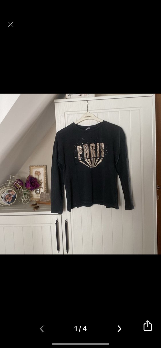 Kız çocukları için uzun kollu, yuvarlak yakalı, bol kesim siyah tişört. Önünde baskılı desen bulunur, yumuşak ve sıcak kumaştan üretilmiştir.