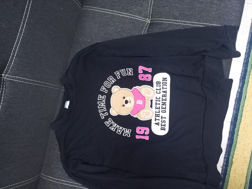Siyah renkli, bol kesim ve bisiklet yaka kız çocuk uzun kollu tişört, baskılı ayıcık ve yazı detaylarıyla, yumuşak ve sıcak kumaştan üretilmiştir.