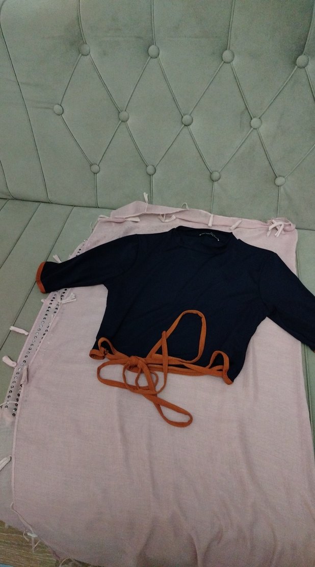 Kız çocuk için siyah renkli, triko kumaştan yapılmış, askılı kolları ve halter yaka tasarımı olan bolero. Bol kesim ve bel detaylıdır.