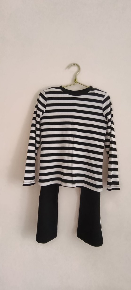 kız Çocuk Siyah-Beyaz Çizgili Uzun Kollu Tişört ve alt takim