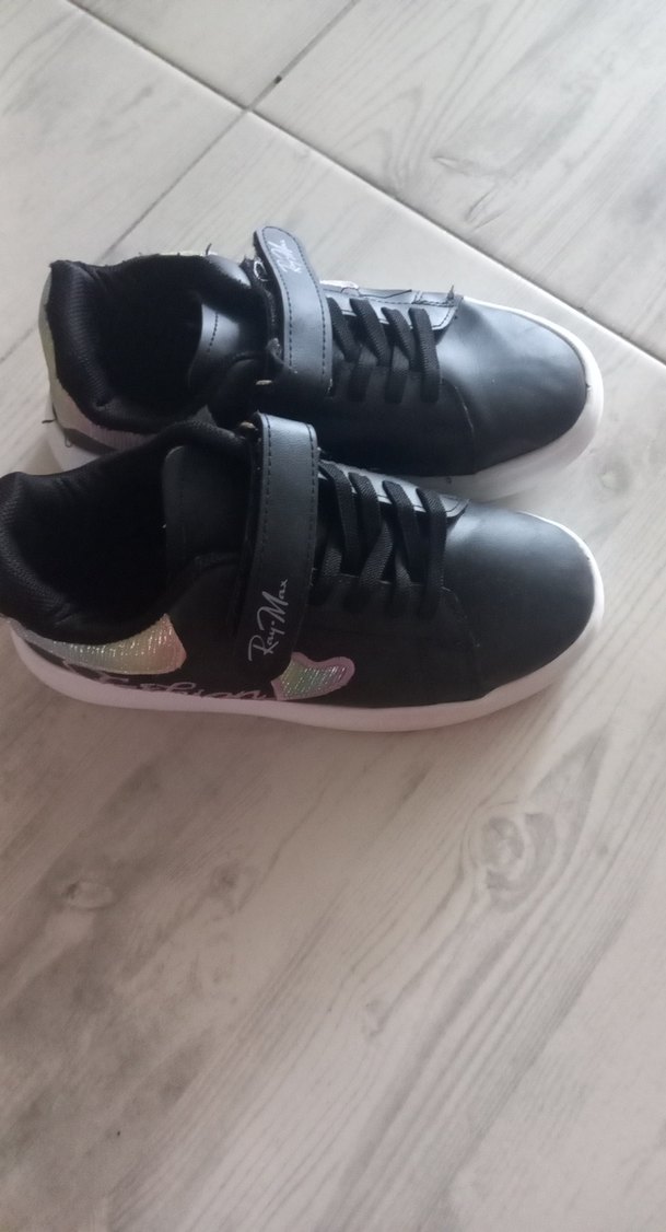 Kız çocukları için siyah, baskılı desenli, cırt cırtlı ve kauçuk tabanlı spor ayakkabı. Rahat ve şık sokak stili için uygun.