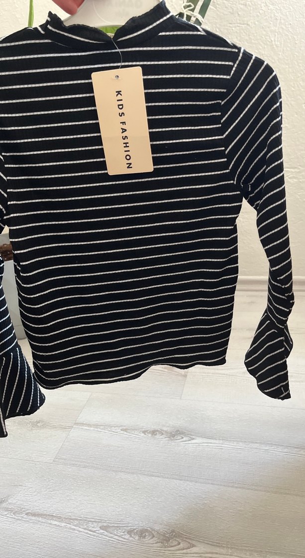 Pamuklu, uzun kollu, düğmeli ve bisiklet yaka kız çocuk bluzu. Siyah zemin üzerinde beyaz çizgilerle trend sokak stiline uygun. Hepsi dip fiyat