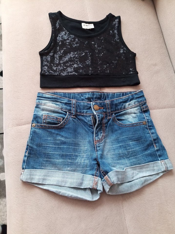 Kız Çocuk Siyah Dantelli Crop Top & Jean Şort