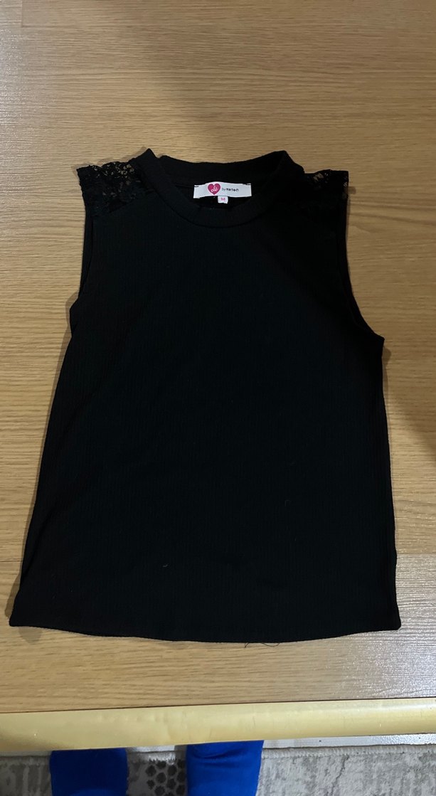 Kız Çocuk Siyah Dantelli Kolsuz Tişört