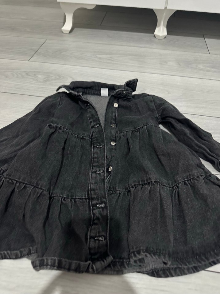 Kız Çocuk Siyah Denim Gömlek elbise