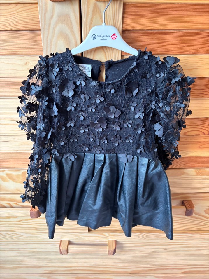 Zara Kız Çocuk Siyah Deri Fırfırlı Elbise