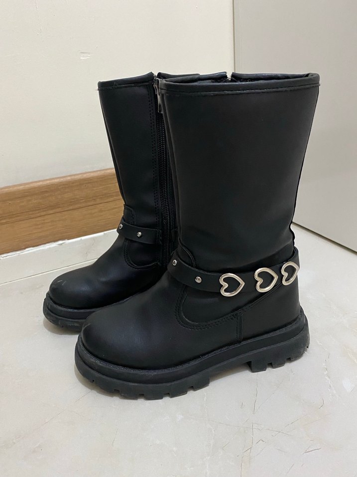 Kız Çocuk Siyah Deri Goth Botlar