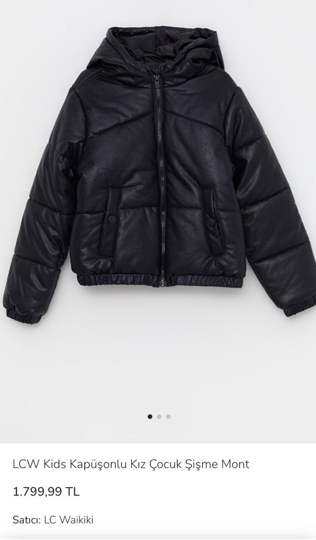 Siyah deri kapüşonlu kız çocuk montu.Sokak stiline uygun, normal boyda ve rahat bir tasarıma sahiptir.
