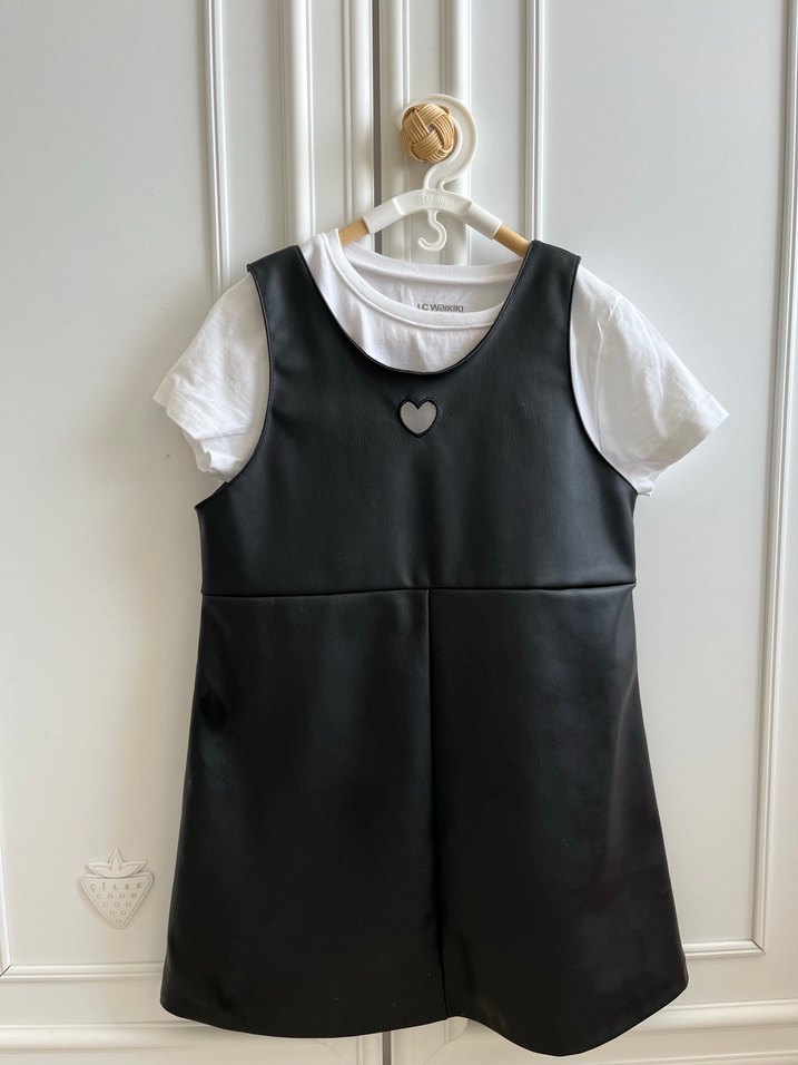 Kız Çocuk Siyah Deri Kolsuz Elbise