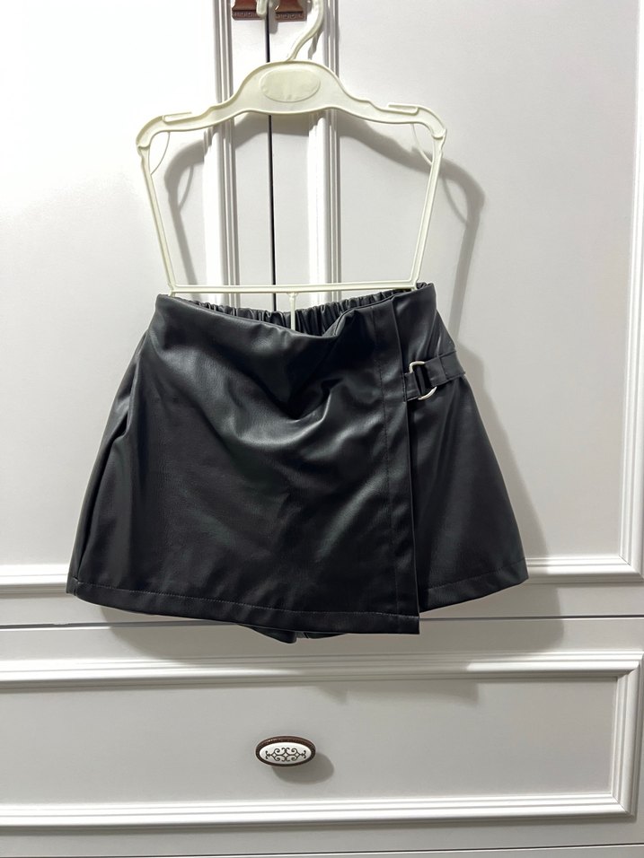Kız çocuk Siyah Deri Mini şort Etek