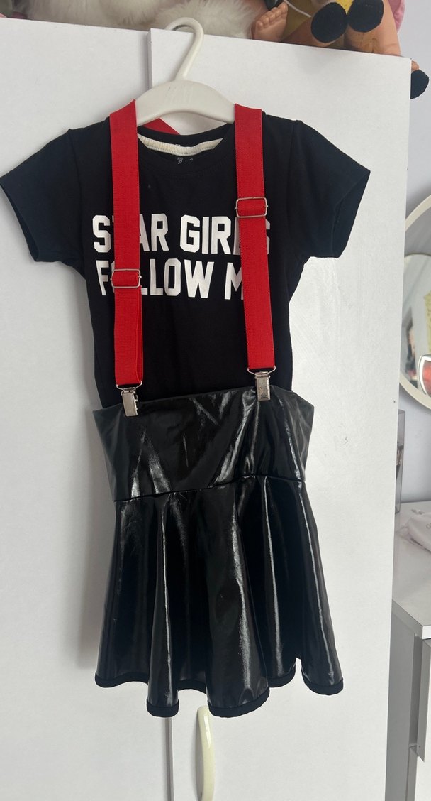 Kız çocuklar için siyah deri kemer, tokalı tasarım ve koyu baskılı desenle rock punk tarzını yansıtıyor.