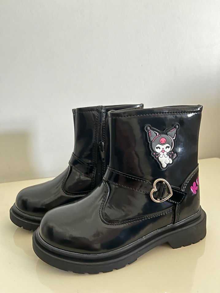 Kız Çocuk Siyah Deri Tokalı kuromi Bot